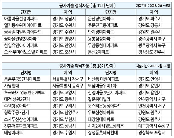 °ü¸®¾÷¹« Áø´Ü ºÎ¹®Àº ´ëÀü ´ë´ö±¸ ºñ·¡ÇѽÅÈÞÇ÷¯½º¾ÆÆÄÆ®, ´ëÀü À¯¼º±¸ ³»¾È¾Ö·¹ÀÌÅ©Èú¾ÆÆÄÆ® µî ÃÑ 50°³ ´ÜÁö´Ù. °ø»ç±â¼ú Á¤½ÄÀÚ¹® ´ÜÁö´Â °æ±â ¼º³²½Ã ¾Æ¸§¸¶À»¼±°æ¾ÆÆÄÆ®, ±¤ÁÖ ºÏ±¸ ¿ëºÀ»ï¼º¾ÆÆÄÆ® µî 12°³ ´ÜÁöÀ̸ç, °ø»ç±â¼ú ¾à½ÄÀÚ¹® ´ÜÁö´Â ¼­¿ï °­¼­±¸ µîÃÌÁÖ°ø5´ÜÁö¾ÆÆÄÆ®, ÀÎõ ¼­±¸ Äö½ºÅ¸¿îµ¿¼º¾ÆÆÄÆ® µî ÃÑ 18°³ ´ÜÁö´Ù.